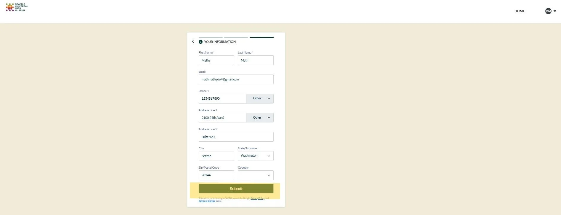 7. Fill out this section with your information as requested. Then, select “Submit”. Once you hit “Submit”, your indication of interest will go to the Volunteer Coordinator for approval.