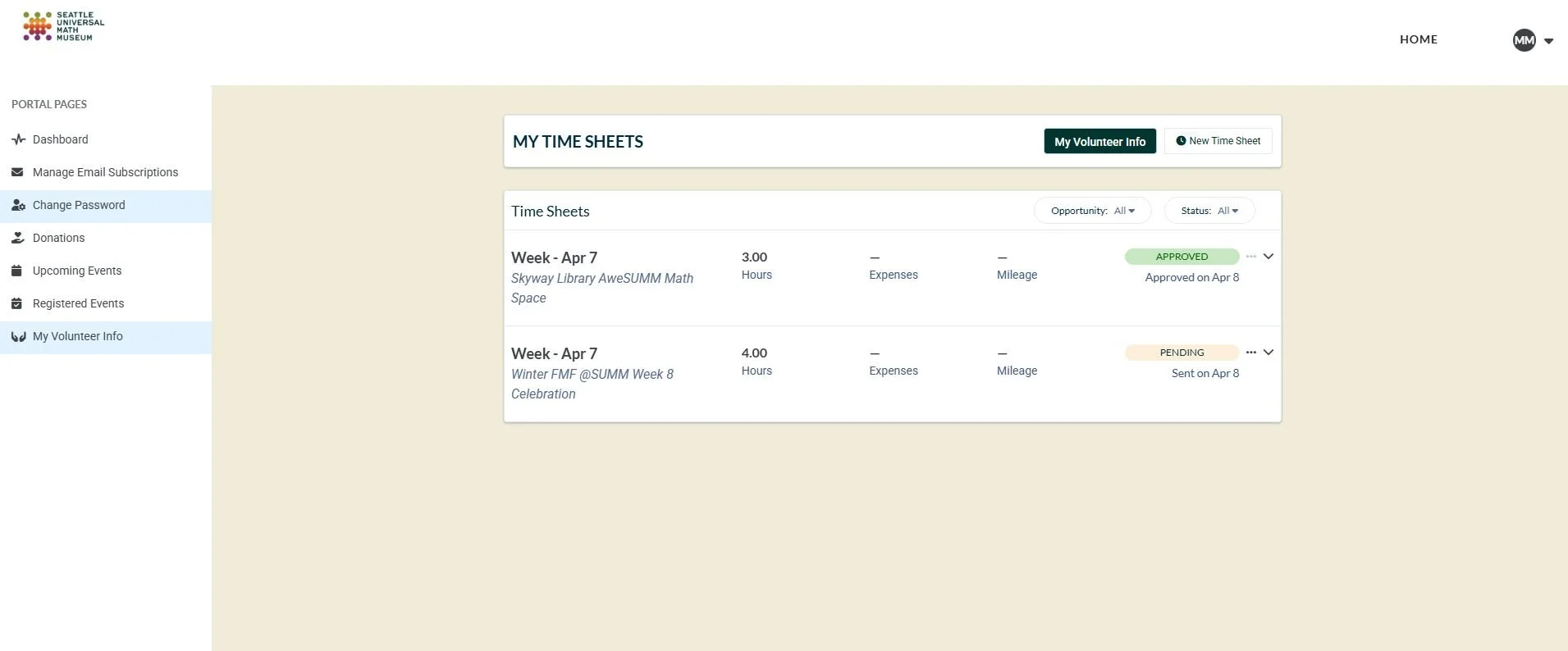 It is very important to track and log all hours volunteered so that your hours are accurately recorded. You will record your volunteer hours via Neon One. If you need verification of your donated time please contact: volunteer-coordinator@seattlemathmuseum.org.